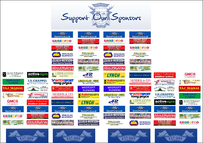 The “SPONSORS BOARD” is a much commented upon focal point within our clubhouse, and wherever possible any press photographs are taken using the board as a backdrop. The board is full of smaller versions of current Perimeter Boards, again provided at no extra cost.